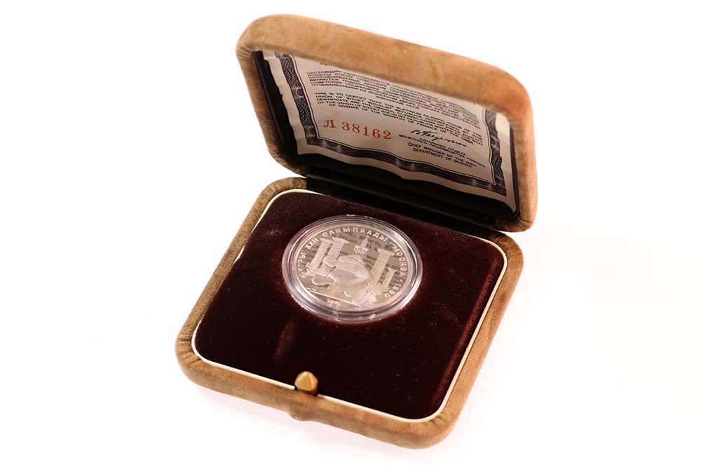 Russia. Olympics 1979. 150 Roubles platinum. Greek wrestlers. Proof.