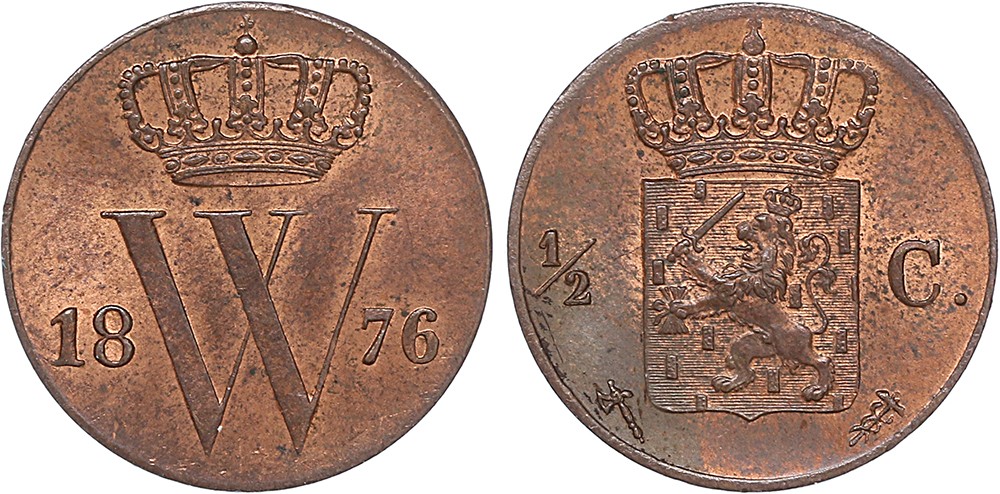 1/2 Cent 1876. FDC. Sublieme kleur.