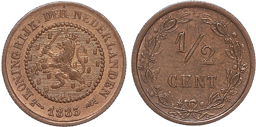 1/2 Cent 1883. Prachtig+.