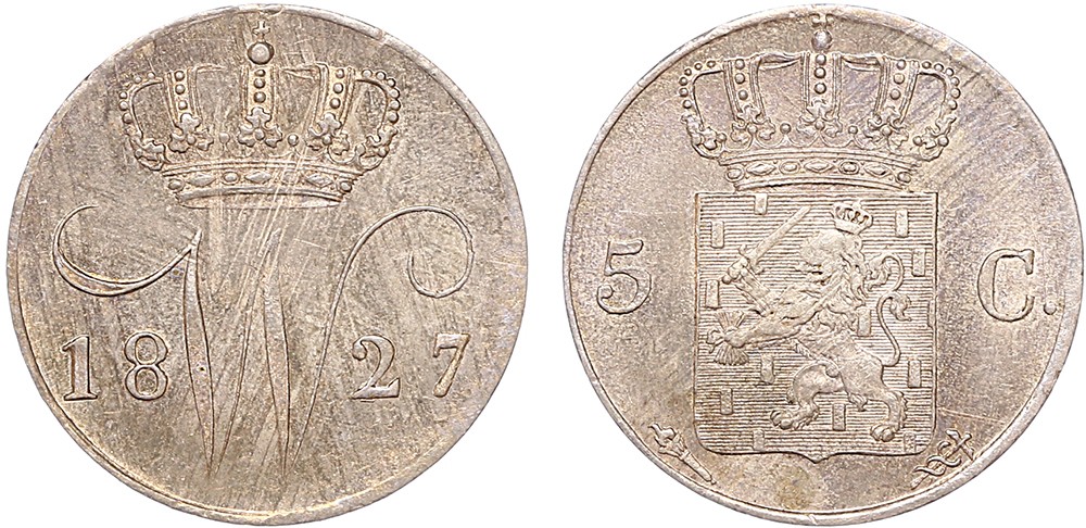 5 Cent 1827 over 1818 Utrecht. FDC. Mooie patina.