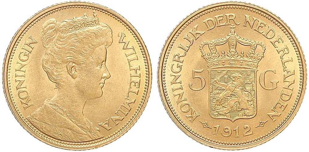 5 Gulden goud 1912. FDC.