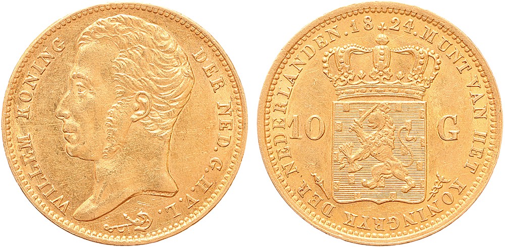 10 Gulden goud 1824 Utrecht. Prachtig.
