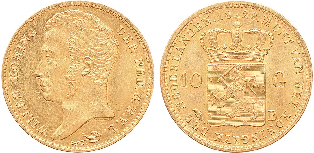10 Gulden goud 1828 Brussel. UNC.
