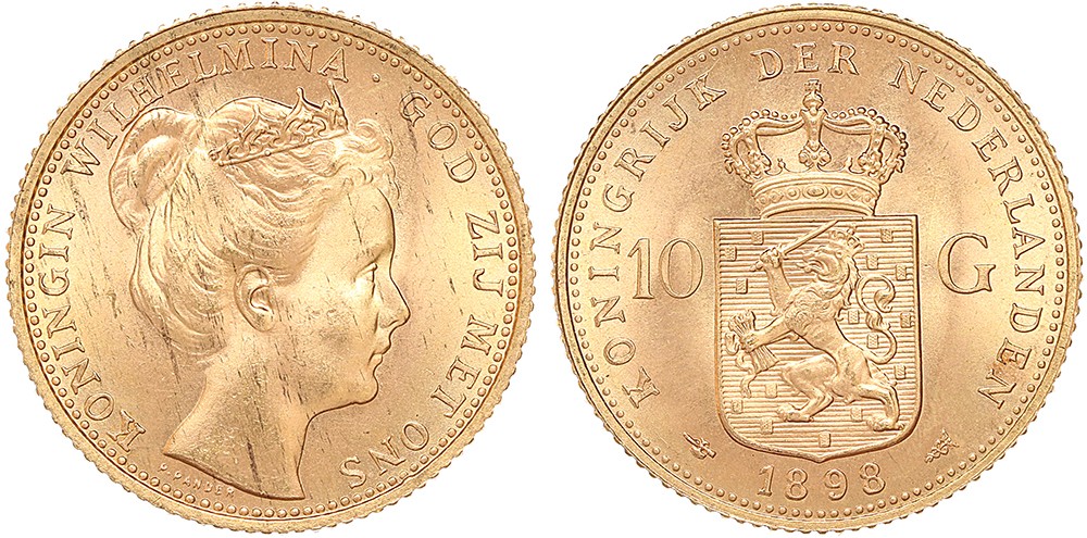 10 Gulden goud 1898a. Zeer fraai/prachtig.