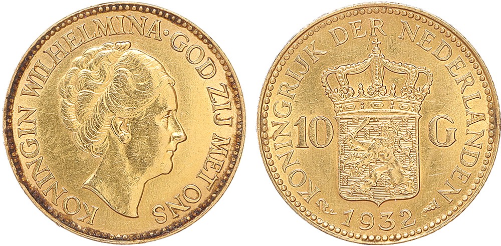 10 Gulden goud 1932. Zeer fraai.