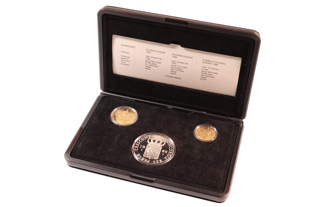 Dukatenset 1989. Zilver, goud en dubbel goud. Proof.