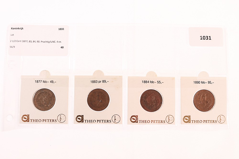 2 1/2 Cent 1877, 83, 84, 90. Prachtig/UNC. 4 ex.