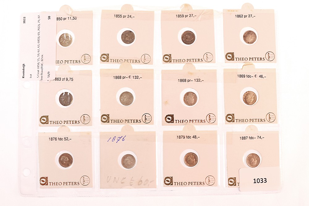 5 Cent 1850, 55, 59, 62, 63, 68(2), 69, 76(2), 79, 87. Zeer fraai/FDC. 12 ex.