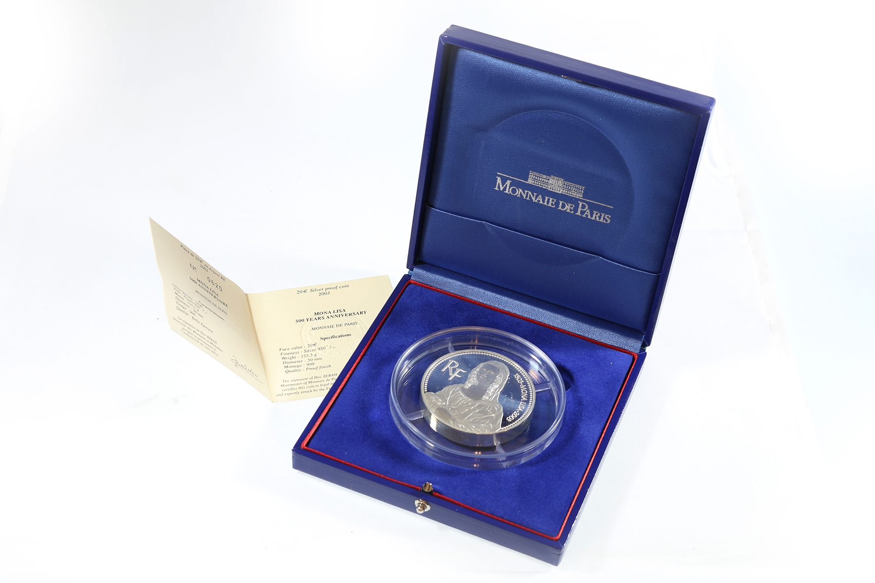 France. 20 Euro silver 2003. Mona Lisa. Proof.