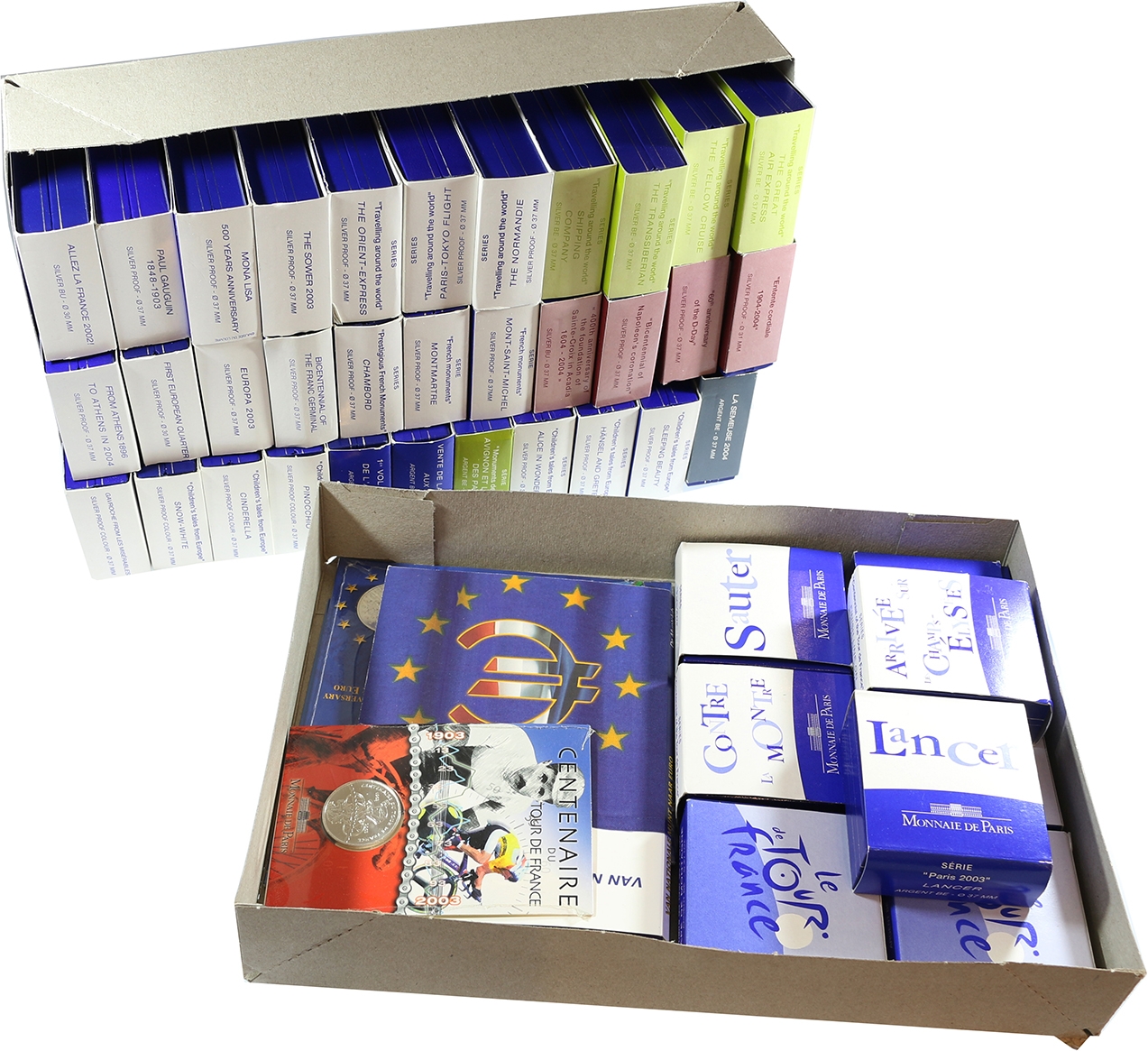 France. Large lot silver commemoratives 2002/2004 including 41 silver cased proof. Total 46 pcs.