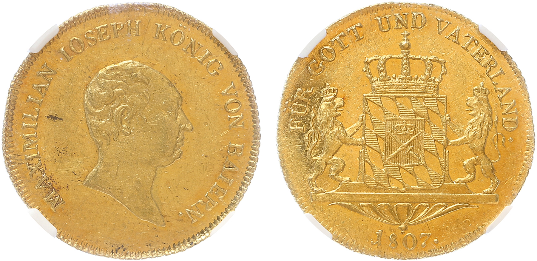 German States Bavaria. Maximilian Joseph. Gold ducat 1807. KM 703. NGC MS 61.