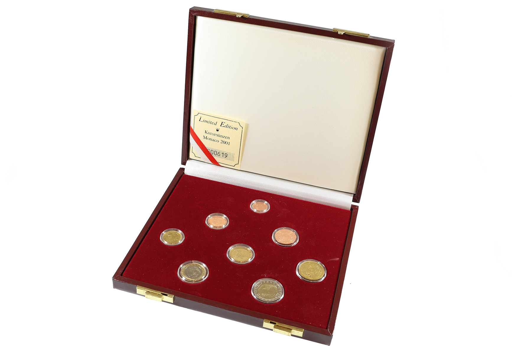 Monaco. Serie of 8 eurocoins 2001 in special box.