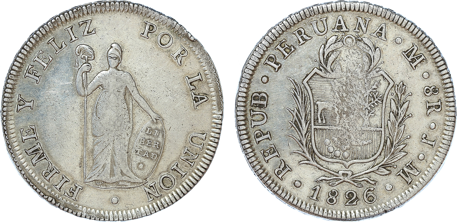 Peru. 8 Reales 1826 JM. KM 142.1. VF/VF+.