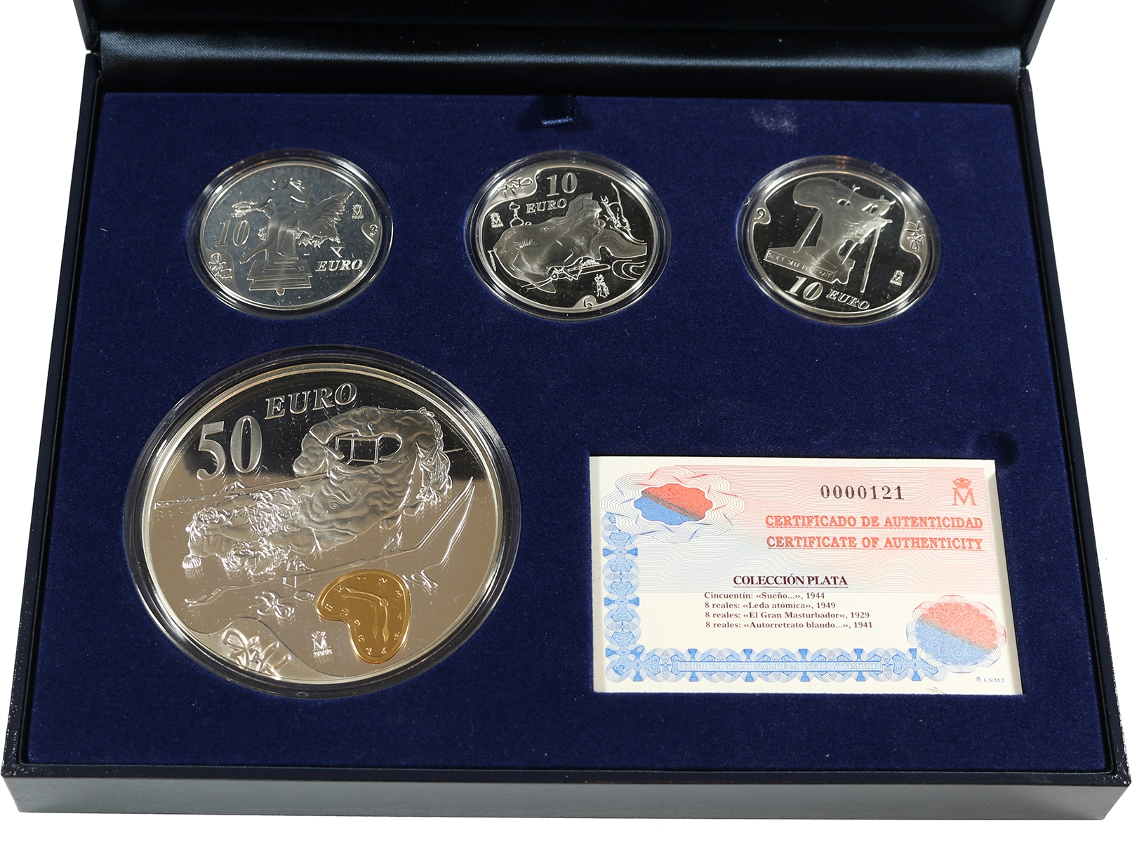 Spain. Dali 2004, set with 3x 10 euro and 1x 50 euro silver. Proof.