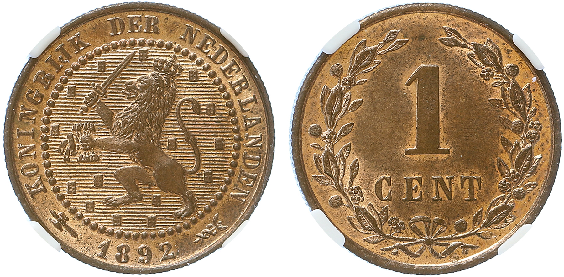 Netherlands. 1 Cent 1892. NGC MS 65 RB.