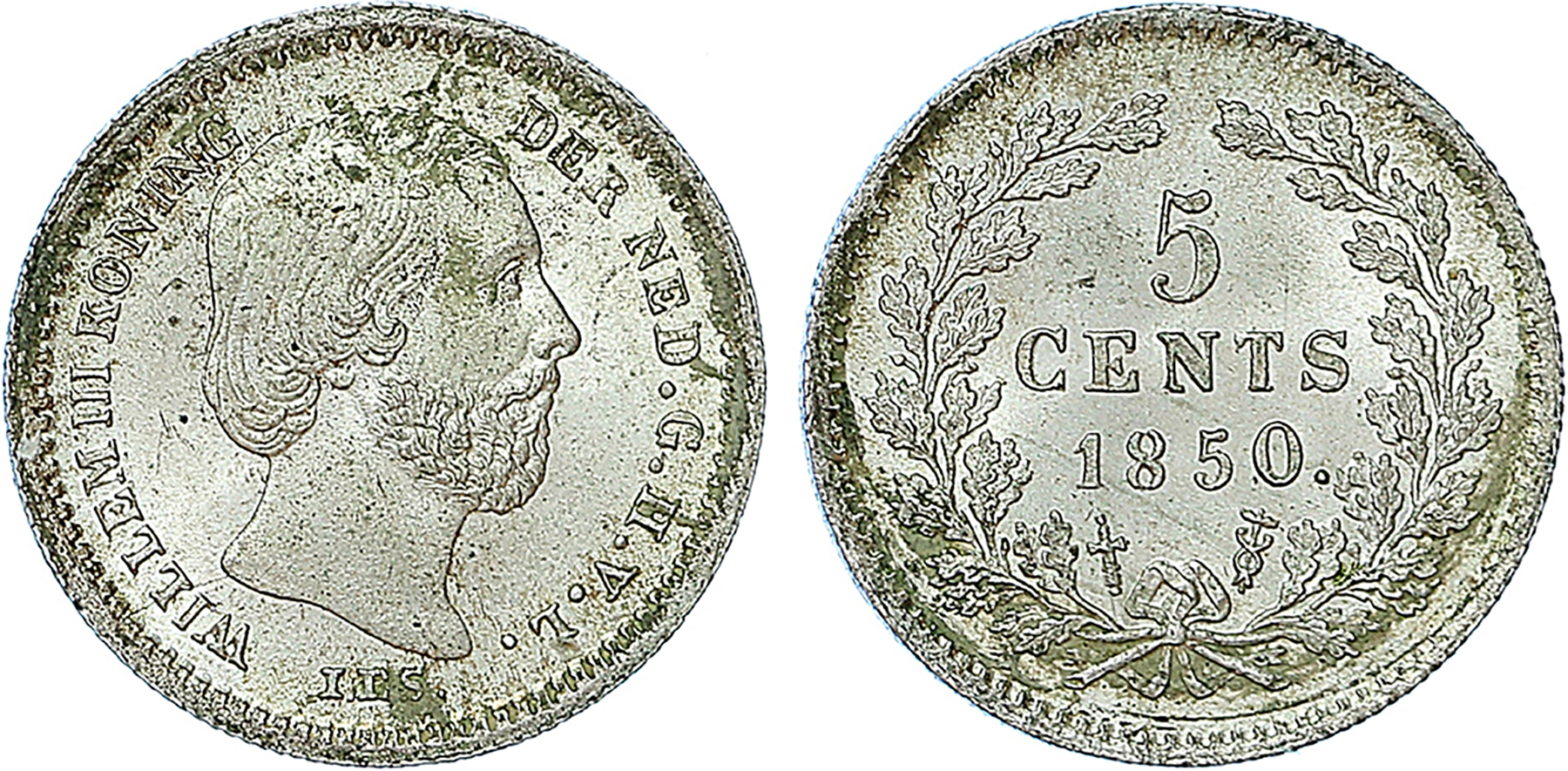 Netherlands. 5 Cent 1850. FDC. Mooie patina.