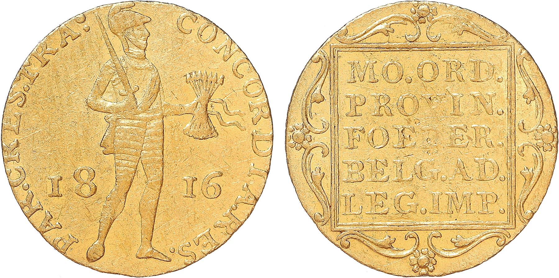 Netherlands. Gouden dukaat 1816 Utrecht. Sch.203. Zeer fraai+.