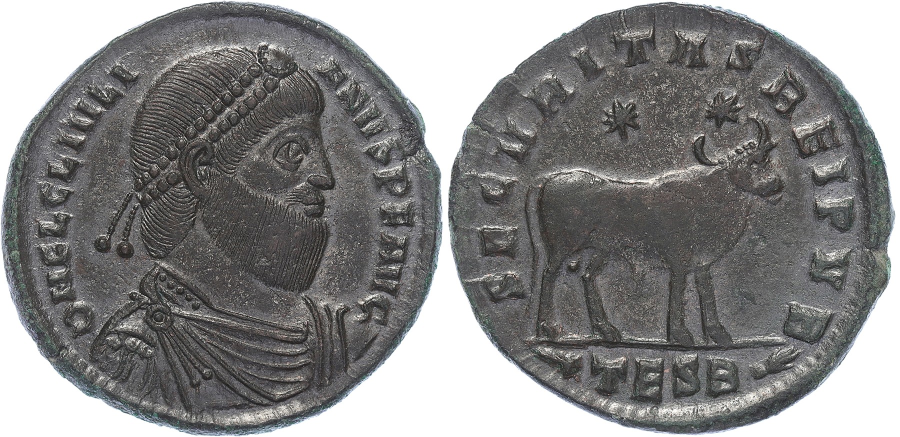 Julianus II Apostata (AD 360-363) - AE Follis (Thessalonica, 8,31g). RIC 225. R - XF, nice silvering. Ex. Elsen A 84/506