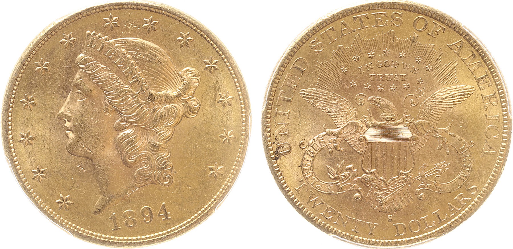 USA. 20 Dollars gold 1894s. PCGS MS 62.