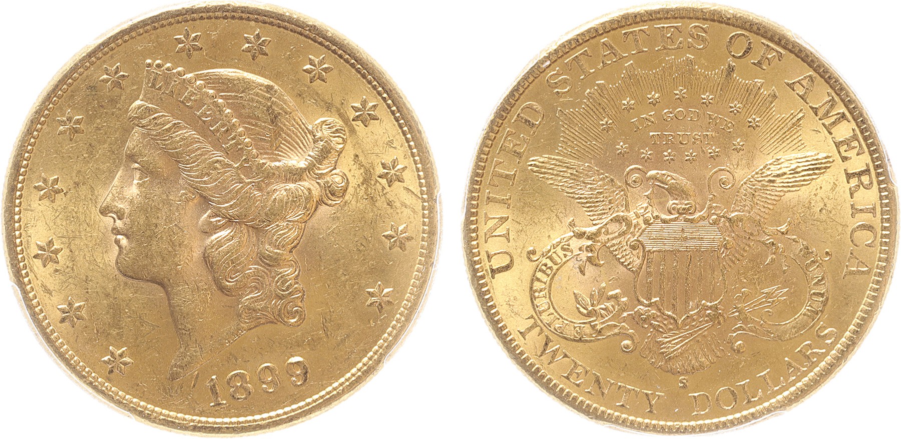 USA. 20 Dollars gold 1899s. PCGS AU 58.