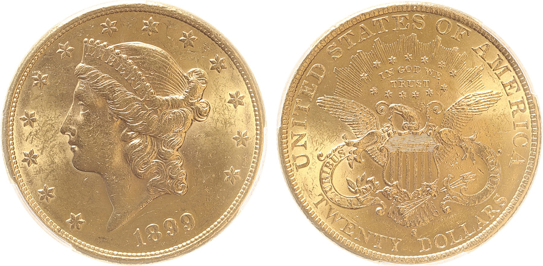 USA. 20 Dollars gold 1899s. PCGS AU 58.