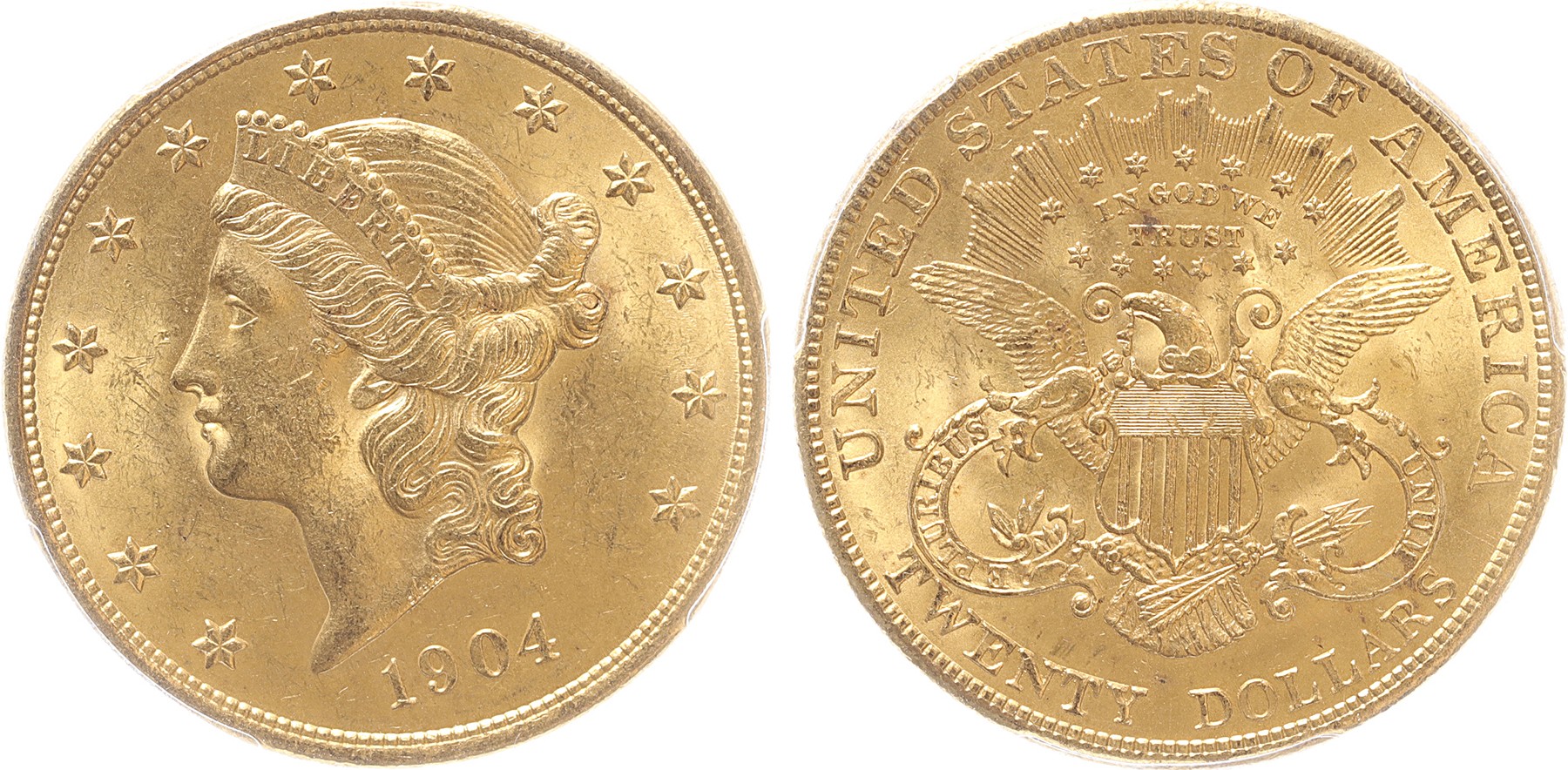 USA. 20 Dollars gold 1904. PCGS MS 64.