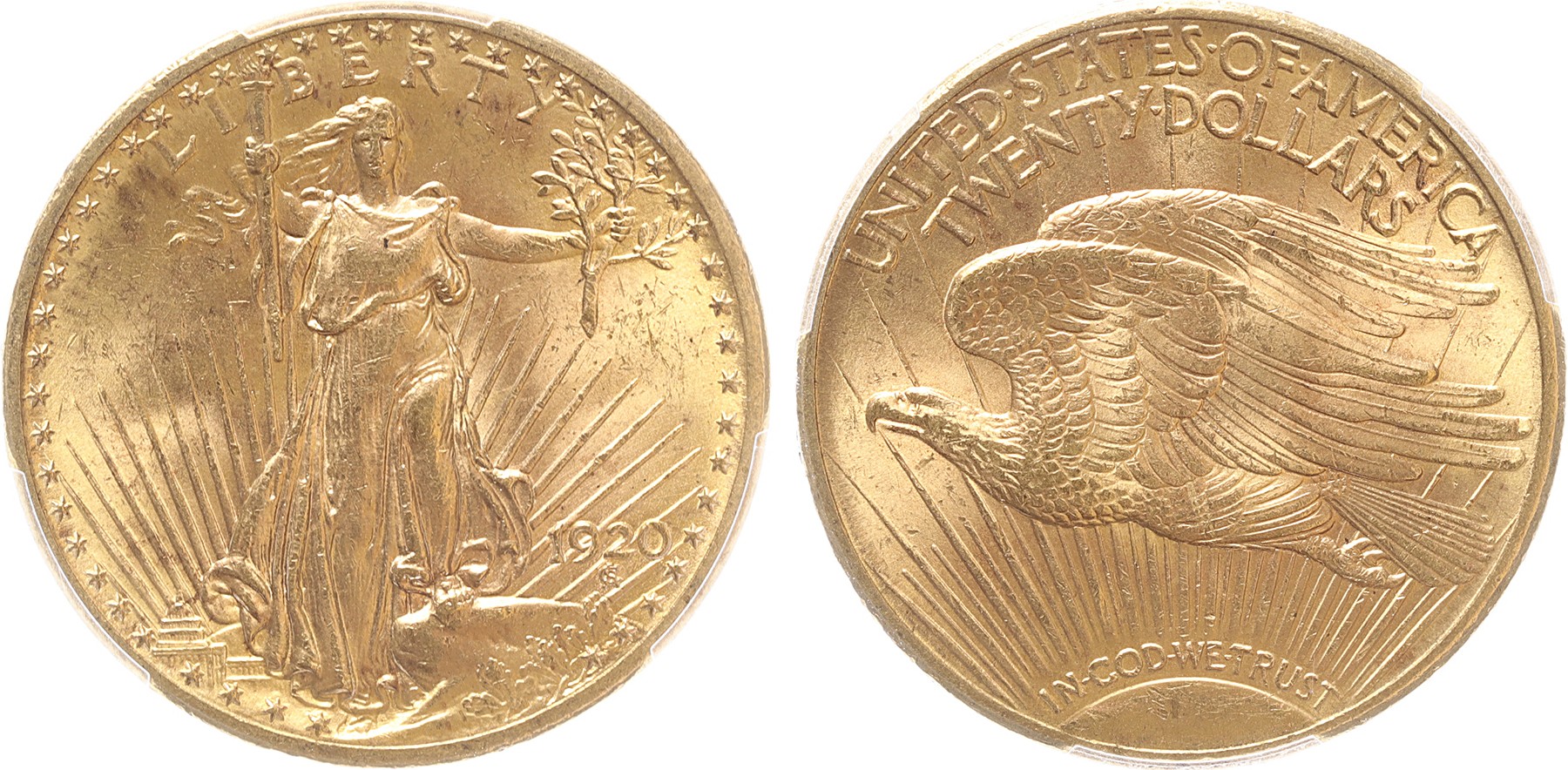 USA. 20 Dollars gold 1920. PCGS MS 64. Scarce in any quality over MS 63