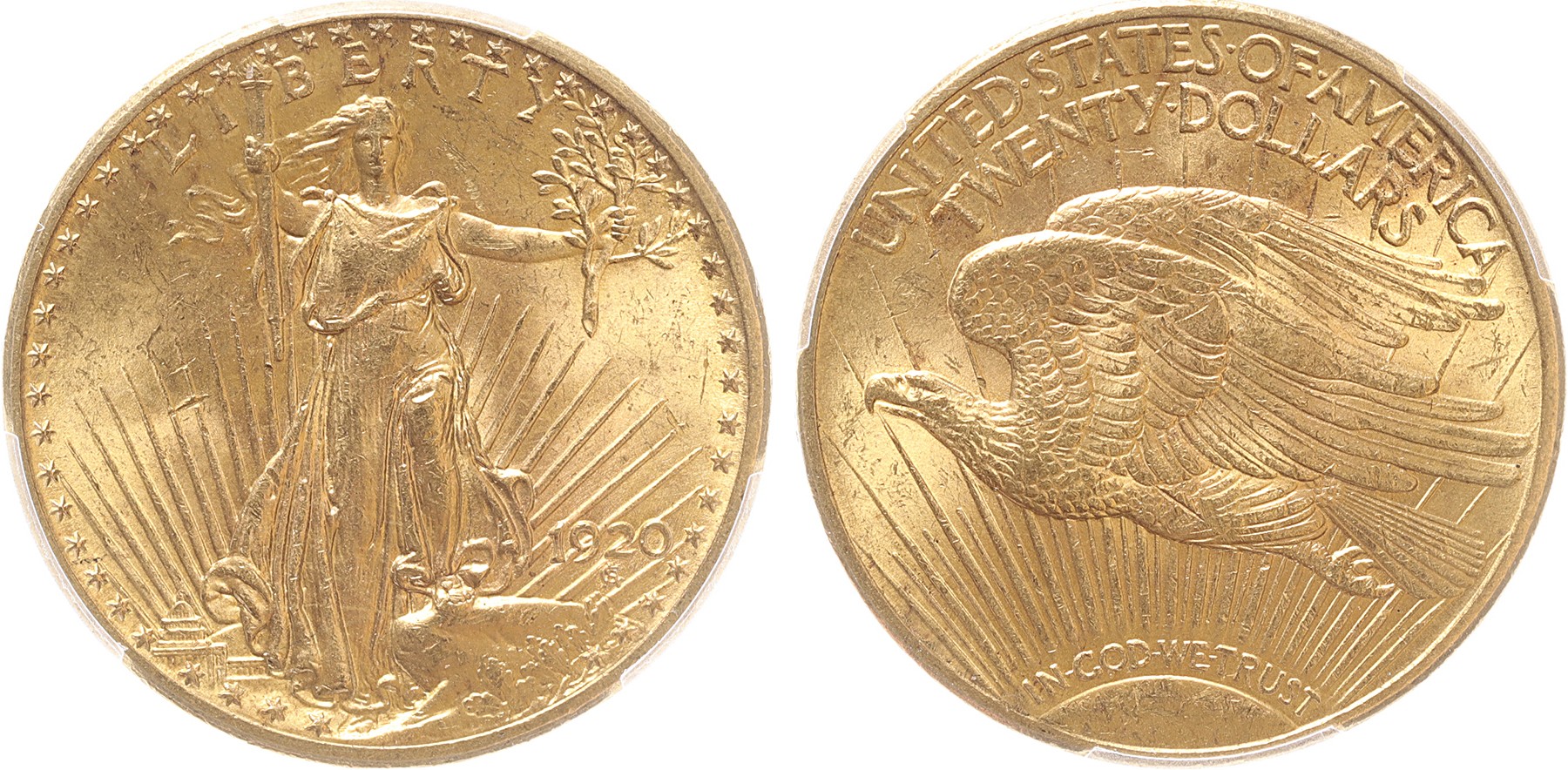 USA. 20 Dollars gold 1920. PCGS MS 63.