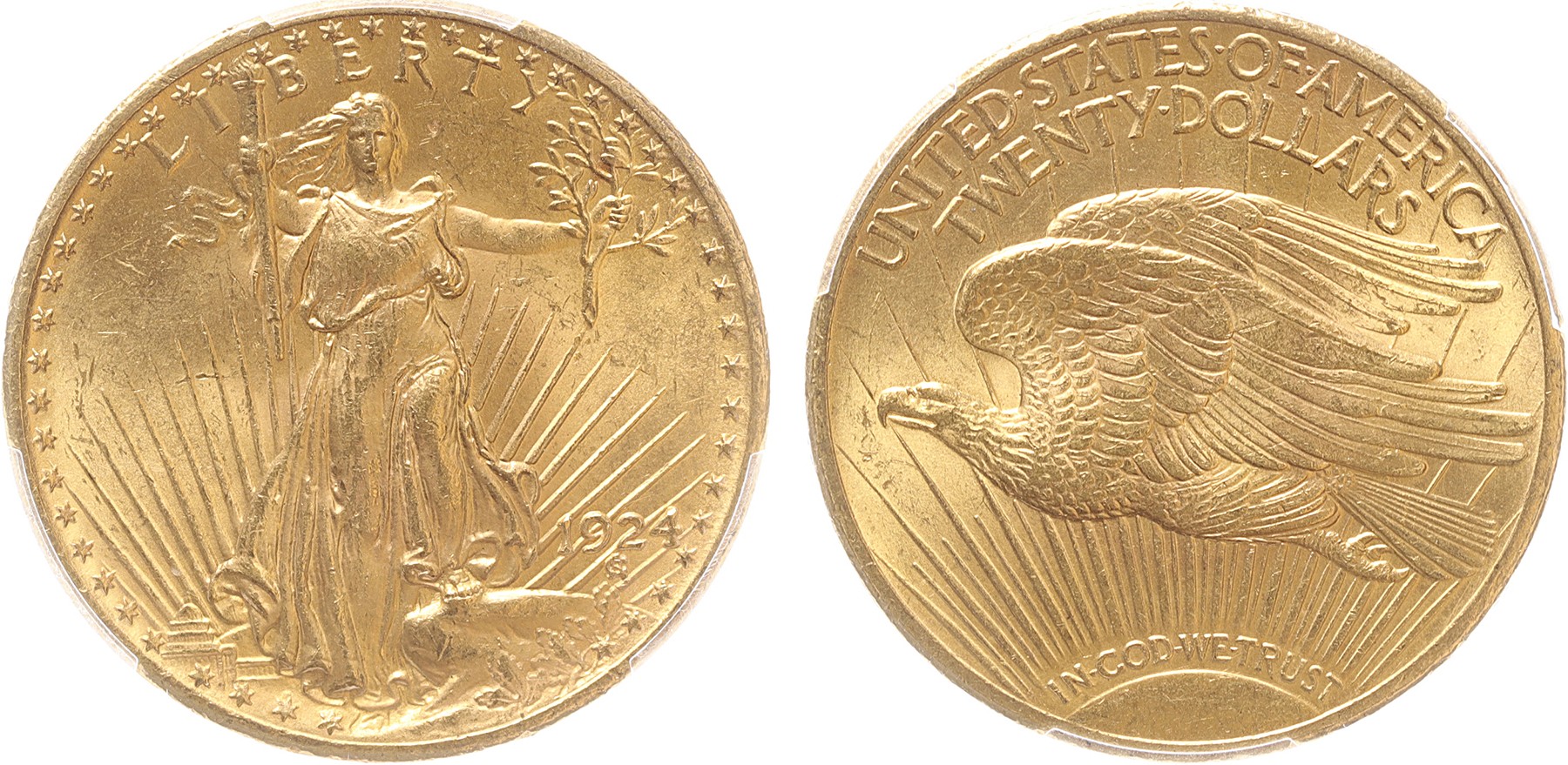 USA. 20 Dollars gold 1924. PCGS MS 64.