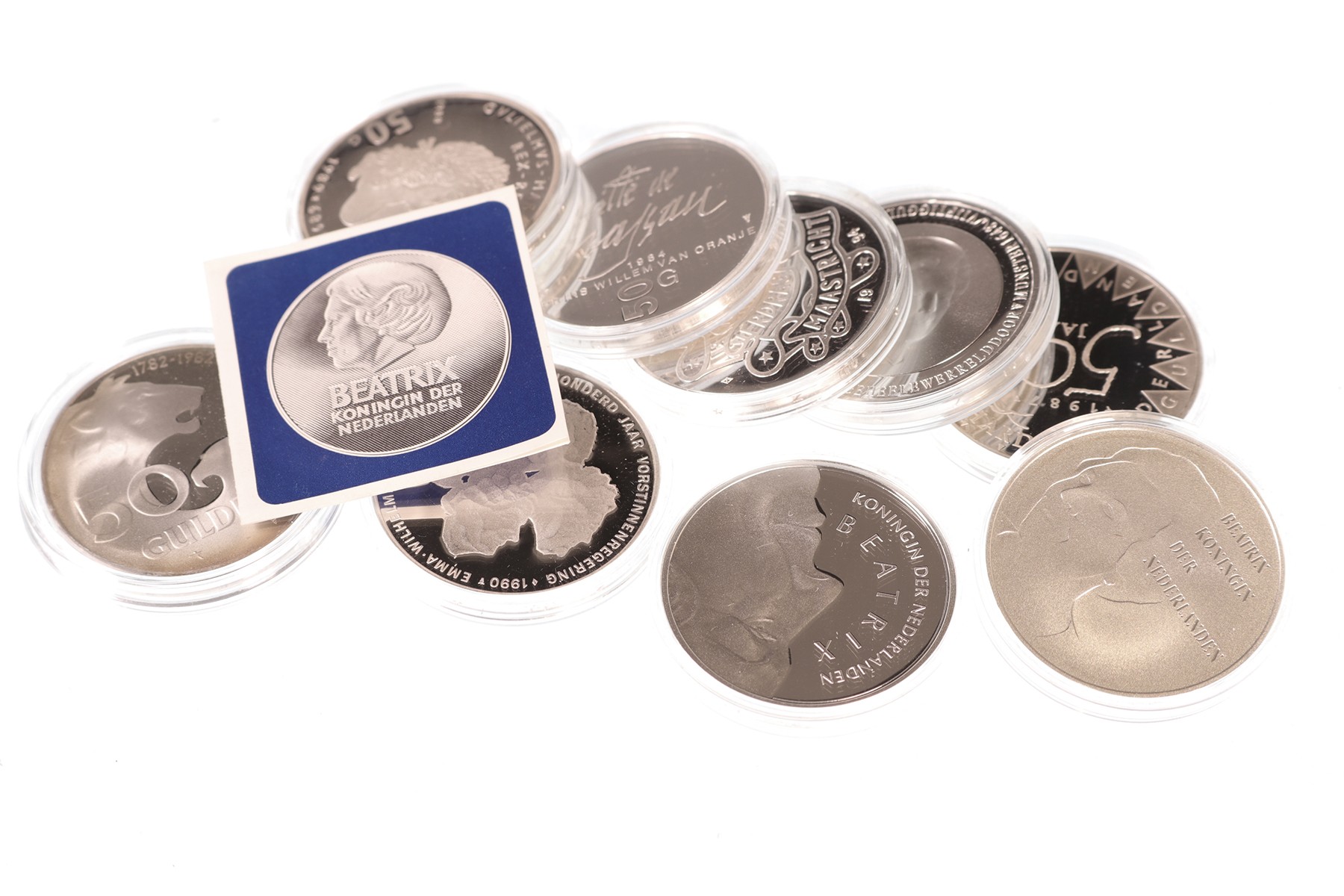 50 Gulden zilver 1982 t/m 1998. Proof. 9 verschillende.