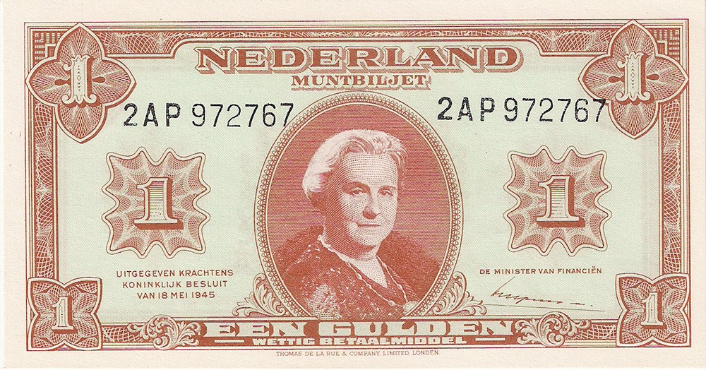 1 Gulden 1945 muntbiljet. Alm. 06-1c. UNC.