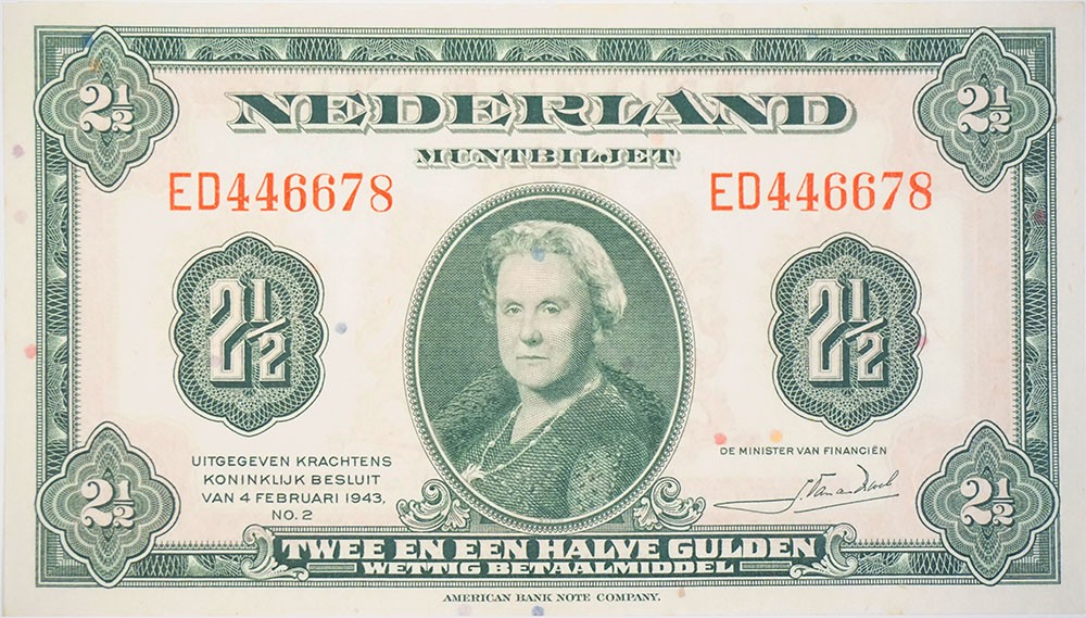 2 1/2 Gulden 1943 muntbiljet. Alm. 14-1. UNC-.