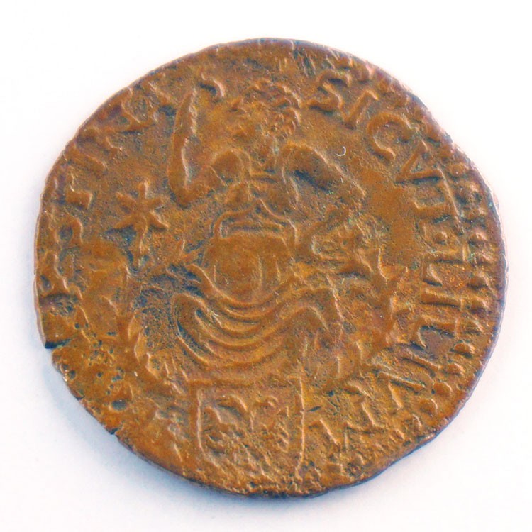Duit z.j. (1596-1598) met open kroon. Cnm 2.04.8. Fraai/zeer fraai.
