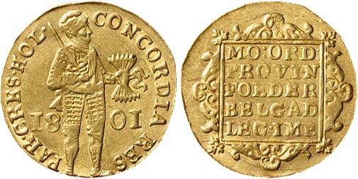 Holland. Gouden dukaat 1801 met ster. Sch.25a. Prachtig.