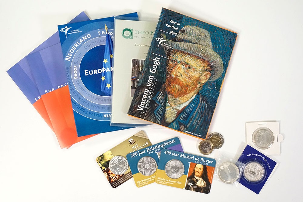 Lot KNM uitgiften w.o. 5 euro zilver proof, coincard, etc.