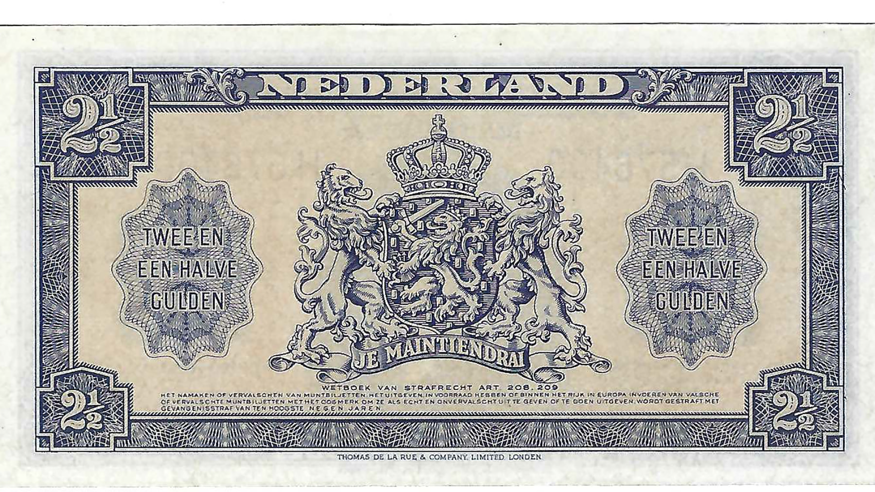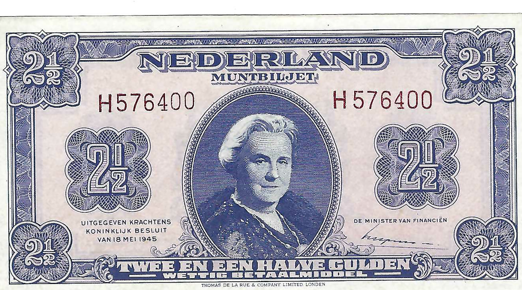 2 1/2 Gulden 1945 muntbiljet. Alm. 15-1a. UNC.