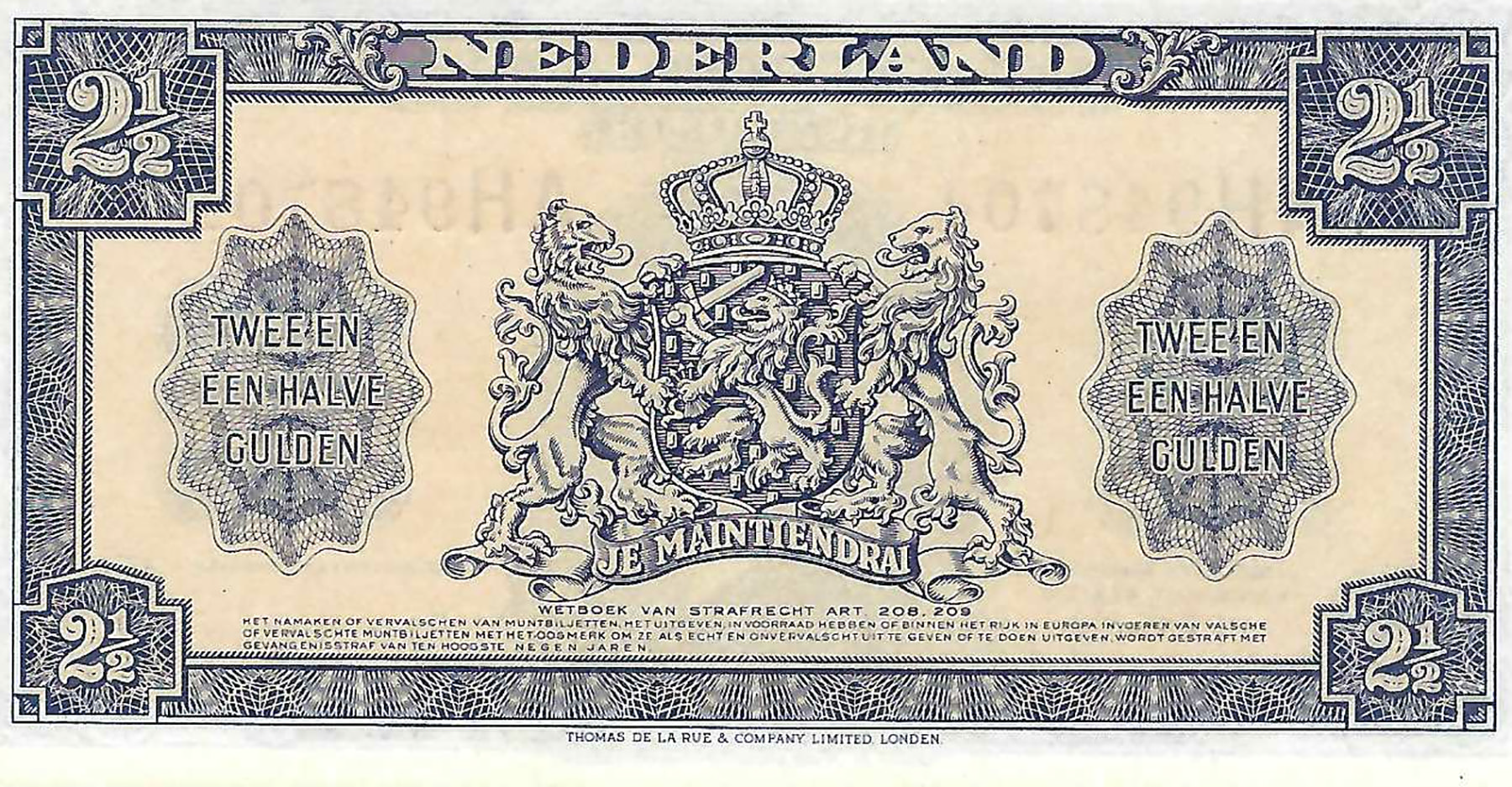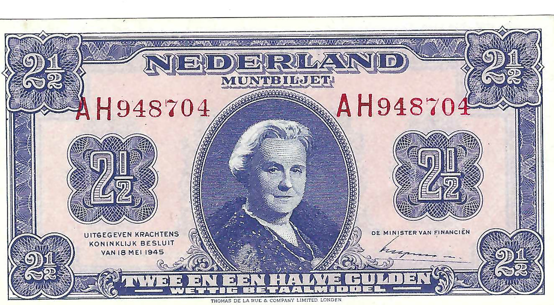 2 1/2 Gulden 1945 muntbiljet. Alm. 15-1e. UNC.