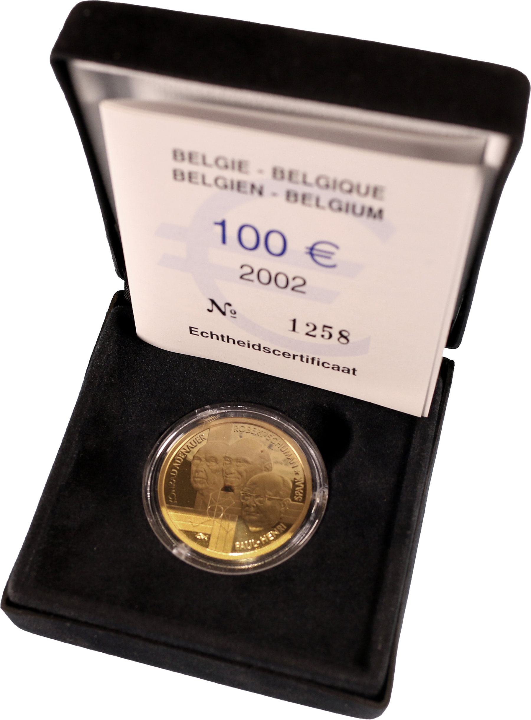 Belgium. 100 Euro gold 2002. Schuman. Proof in box.