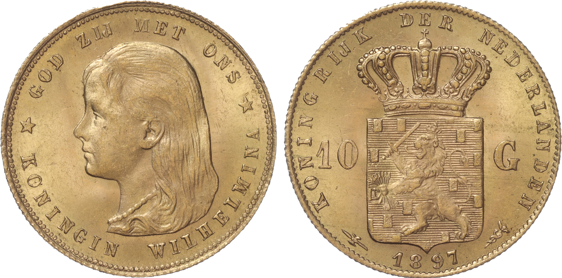 10 Gulden goud 1897a. UNC.