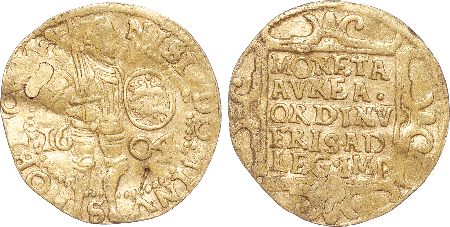 Friesland. Gouden dukaat 1604. Cnm. 2.16.15; D. 1005. Fraai/zeer fraai. RRR.