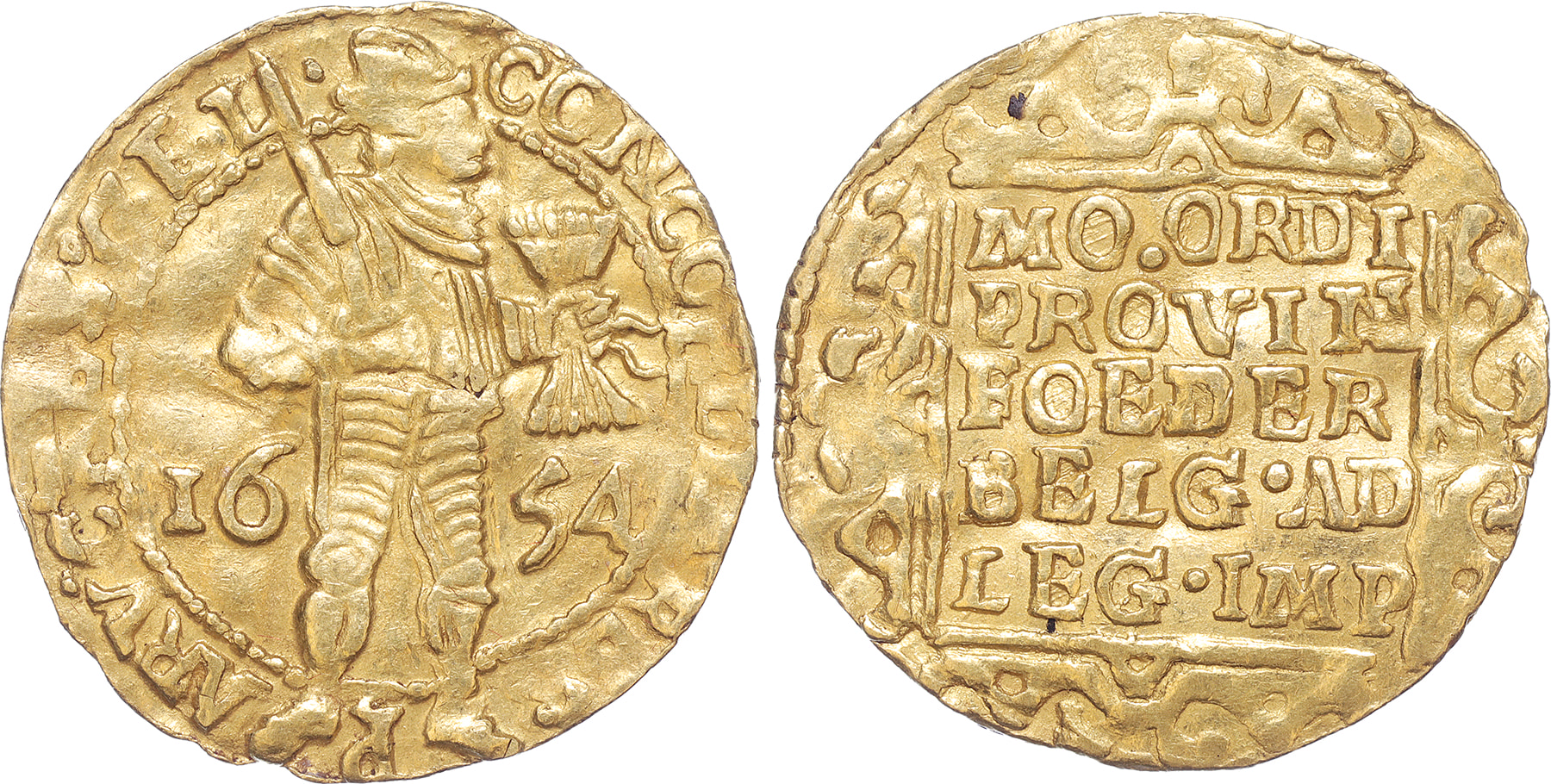 Gelderland. Gouden dukaat 1654. Cnm. 2.17.77; D. 649. Fraai/zeer fraai.