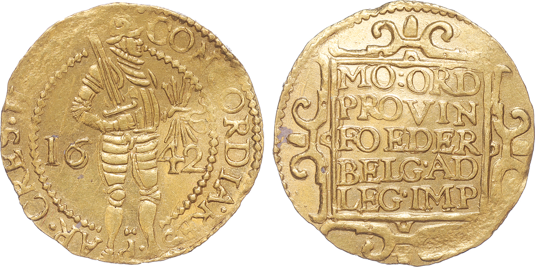 Holland. Gouden dukaat 1642. Cnm. 2.28.53; D. 774. Zeer fraai/prachtig.