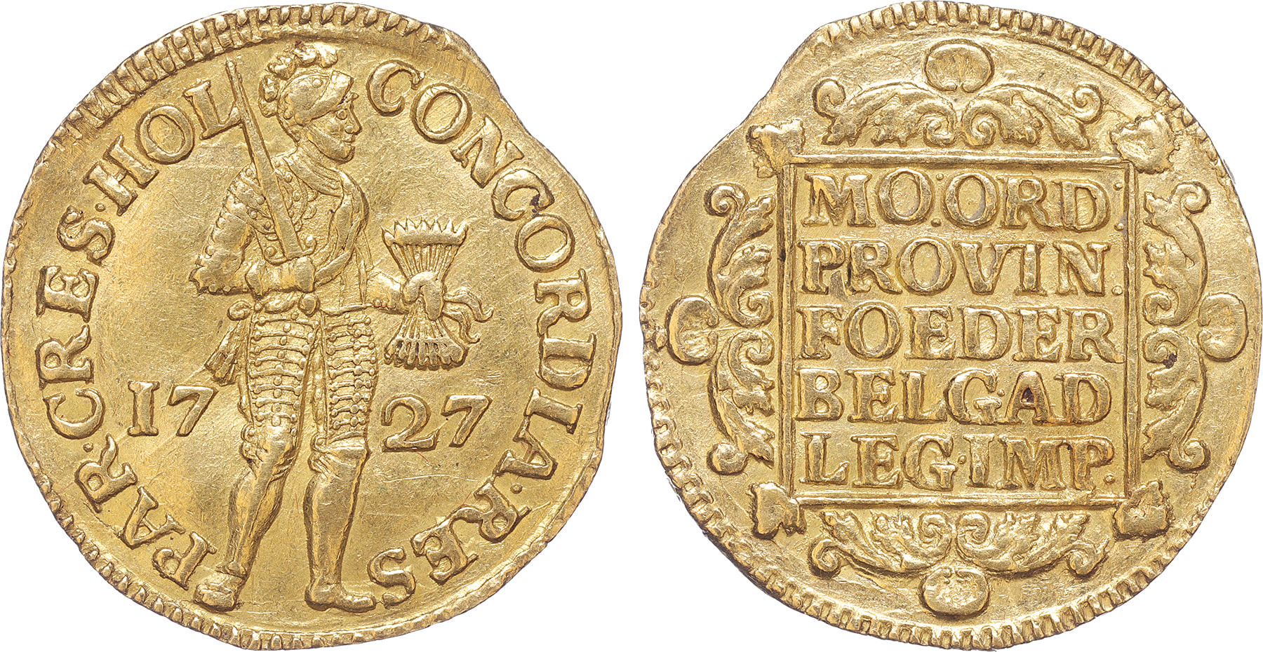 Holland. Gouden dukaat 1727. Cnm. 2.28.54; D. 775. Zeer fraai+.