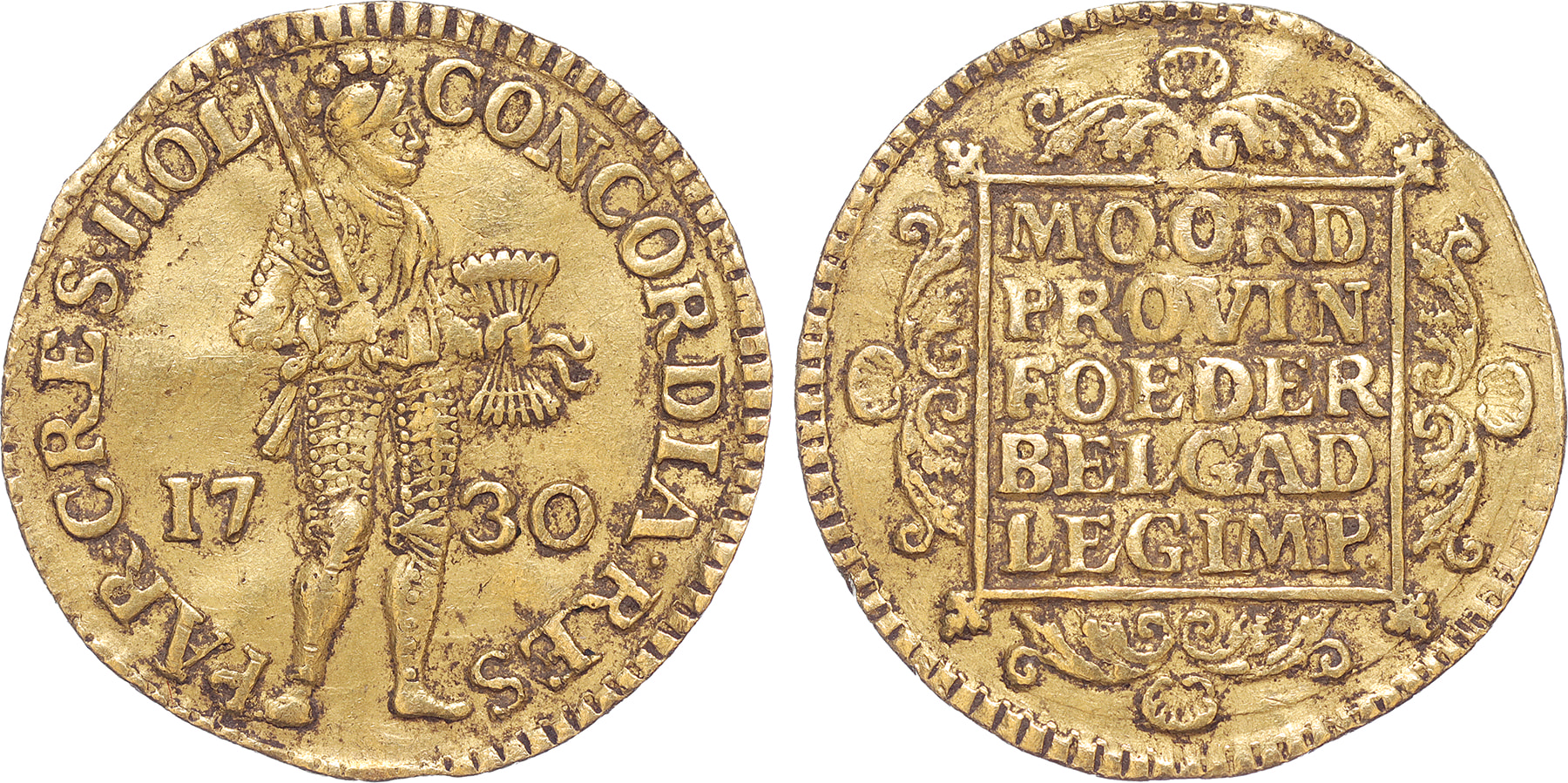 Holland. Gouden dukaat 1730. Cnm. 2.28.54; D. 775. Fraai/zeer fraai.