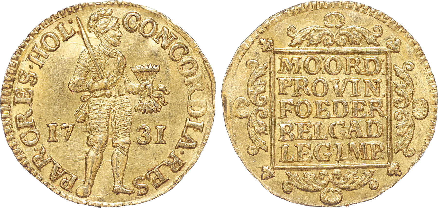 Holland. Gouden dukaat 1731. Cnm. 2.28.54; D. 775. Zeer fraai.