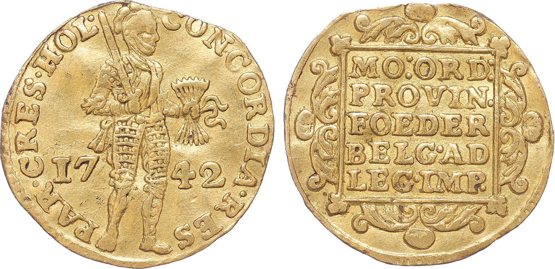 Holland. Gouden dukaat 1742. Cnm. 2.28.54; D. 775. Zeer fraai.