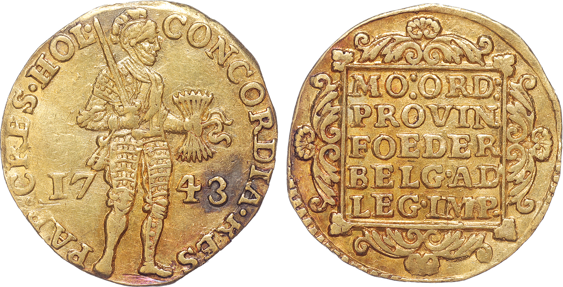Holland. Gouden dukaat 1743. Cnm. 2.28.54; D. 775. Fraai/zeer fraai.