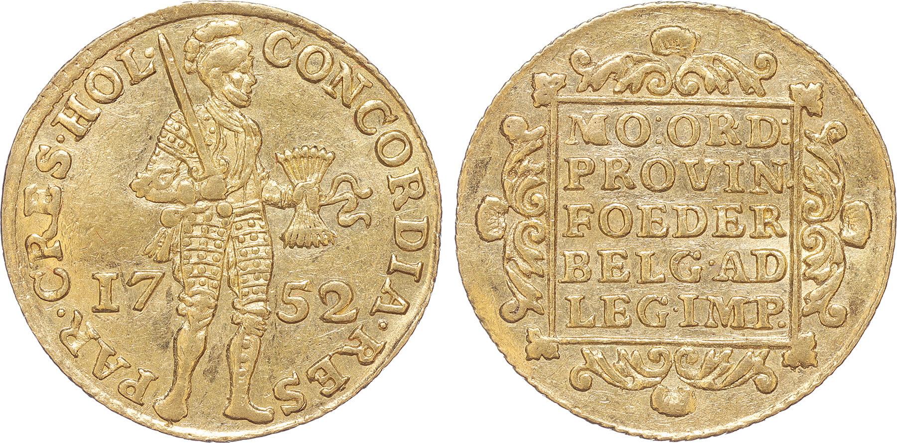 Holland. Gouden dukaat 1752. Cnm. 2.28.54; D. 775. Prachtig.