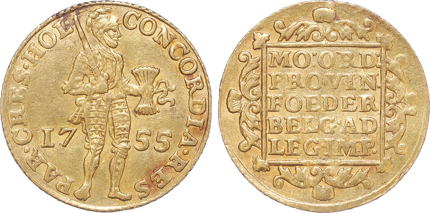 Holland. Gouden dukaat 1755. Cnm. 2.28.54; D. 775. Zeer fraai.