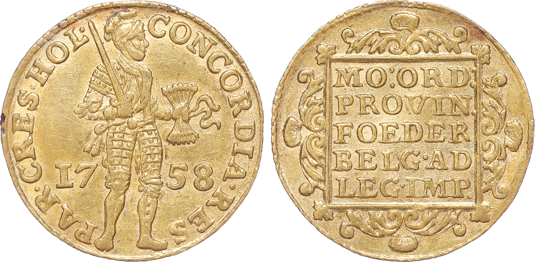 Holland. Gouden dukaat 1758. Cnm. 2.28.54; D. 775. Zeer fraai.